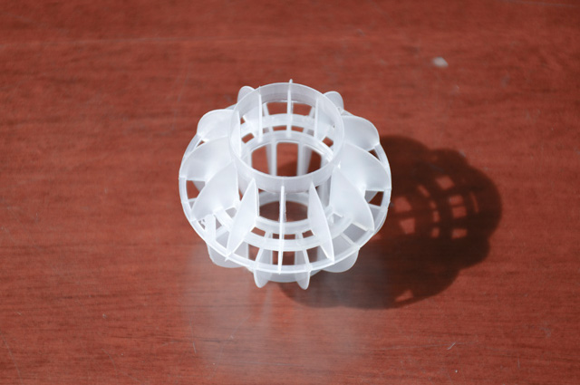 多面空心球中間鏤空結(jié)構(gòu)形成空隙大,不易被阻塞的特性。這種結(jié)構(gòu)在空氣洗滌、廢氣吸收、灰塵過(guò)濾等廢氣處理工程方面應(yīng)用,具有處理風(fēng)量大、阻力小的特點(diǎn)。由于多面空心球的空隙中有較高的滯液量,可使塔內(nèi)液體停留時(shí)間長(zhǎng),從而增加了氣體與液體的接觸面積和接觸時(shí)間,便廢氣得到充分吸收處理。