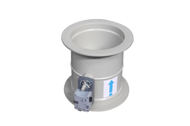 用于實(shí)驗(yàn)室排風(fēng)的蝶閥,采用PP材料,耐腐蝕。內(nèi)置基于文丘里原理的風(fēng)量測(cè)量段,用于準(zhǔn)確測(cè)量排風(fēng)風(fēng)量,只需1*D直管段便可準(zhǔn)確測(cè)量。自帶流量傳感器,實(shí)時(shí)測(cè)量。同時(shí)具有法蘭和承插連接接口,便于安裝。